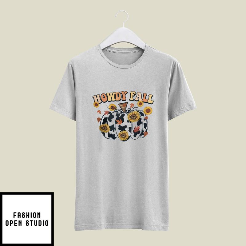 Howdy Fall Pumpkin Western Cowhide T-shirt