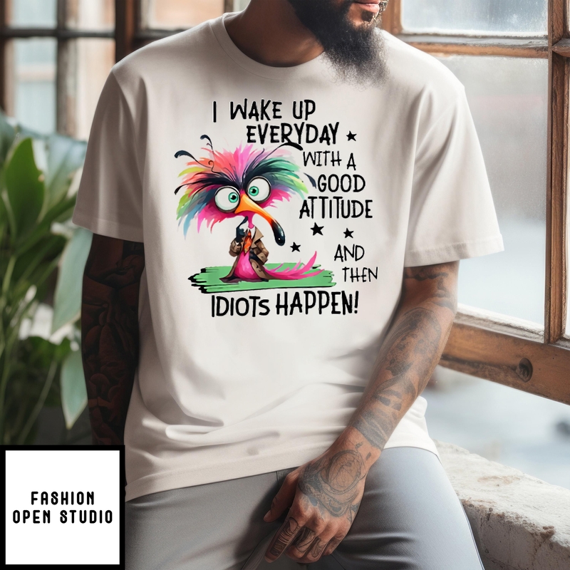 I Wake Up Everyday With A Good Attitude And Then Idiots Happen T-shirt