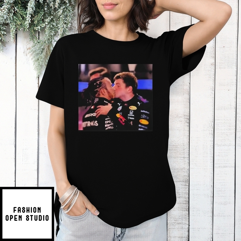 Lewis Hamilton And Max Verstappen Kissing Photo Graphic T-shirt